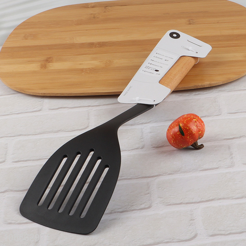 New arrival heat resistant nylon slotted spatula with wooden handle