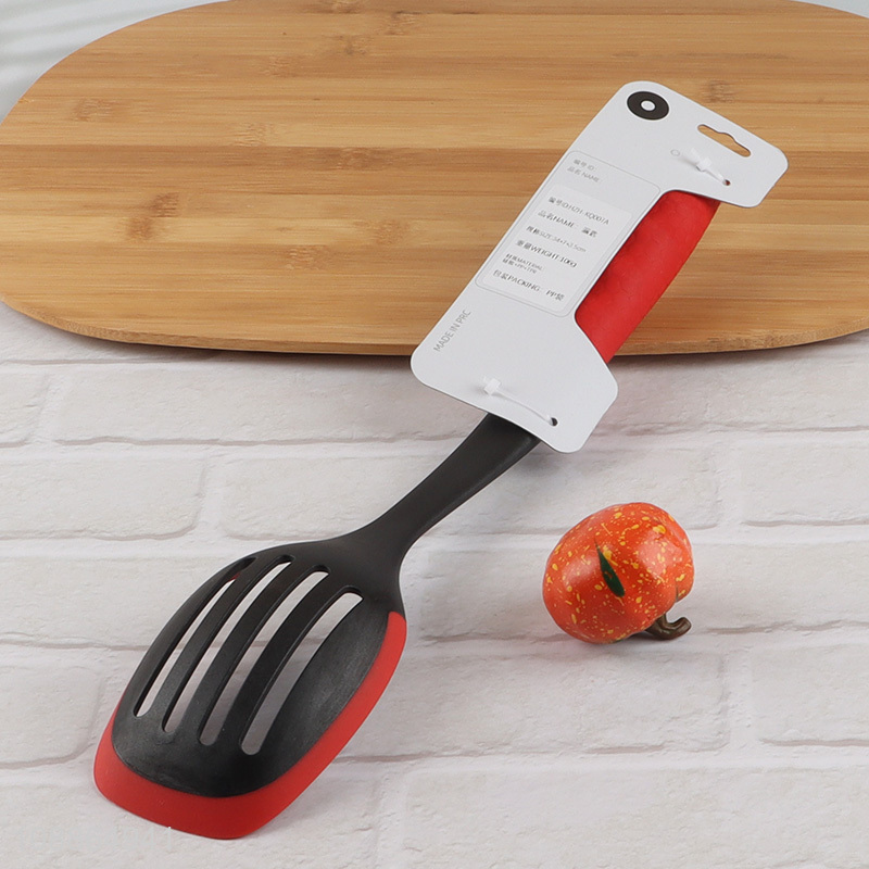 China imports slotted cooking spoon with silicone edge & plastic handle