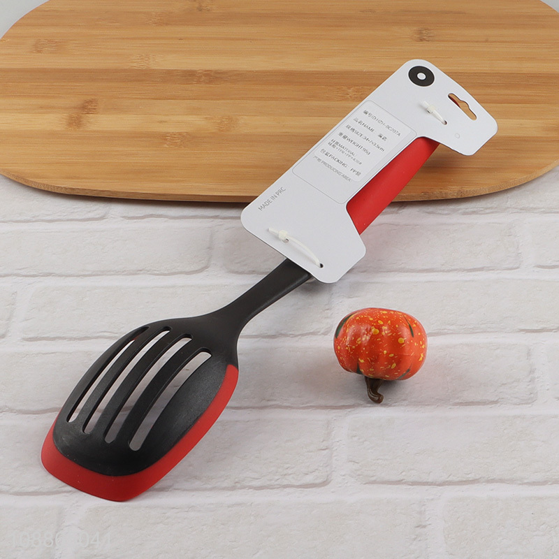Factory price slotted cooking spoon with silicone edge & plastic handle
