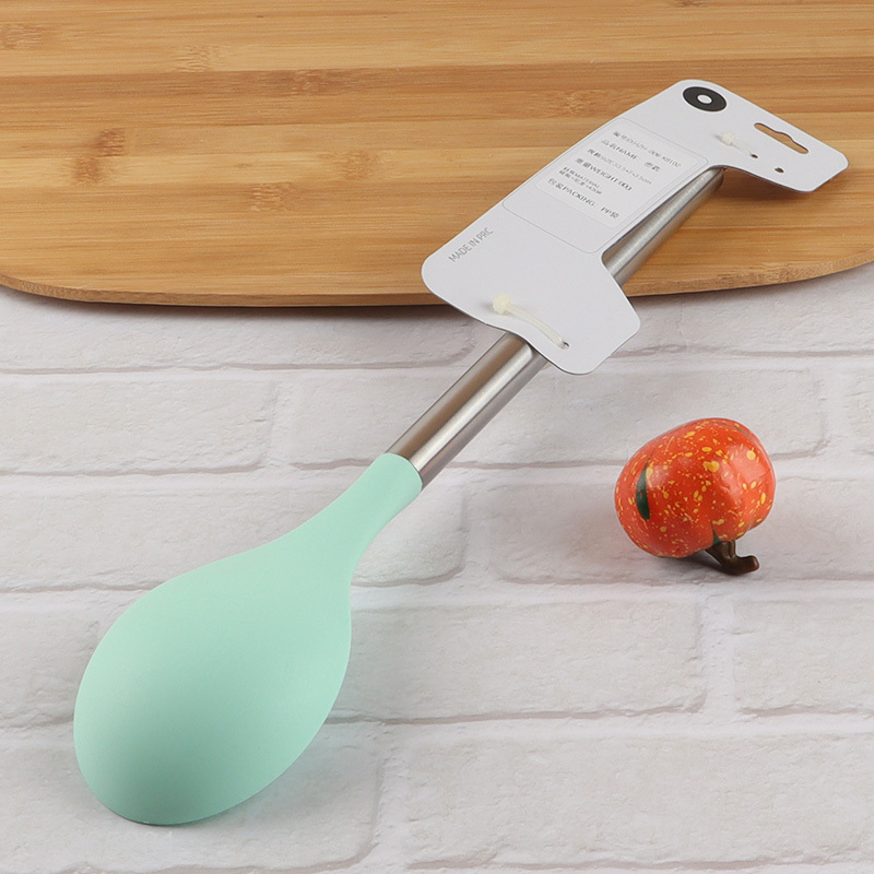 New product nylon silicone cooking spoon with stainless steel handle