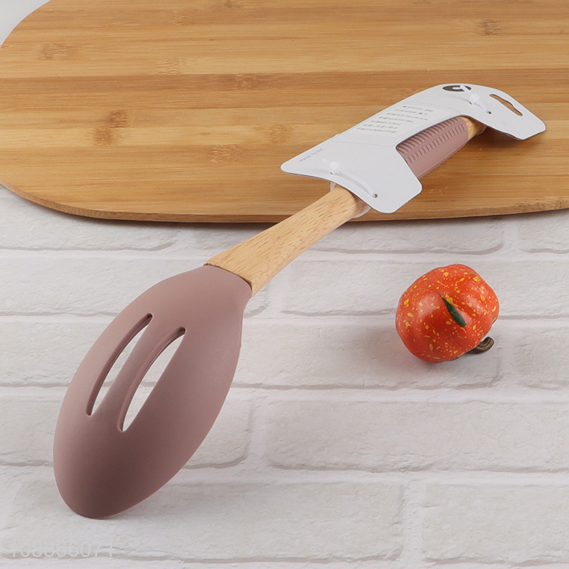 Good quality silicone nylon kitchen cooking ladle with wooden handle