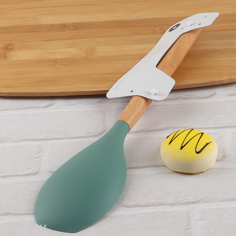 Online wholesale food grade silicone salad spoon with wooden handle