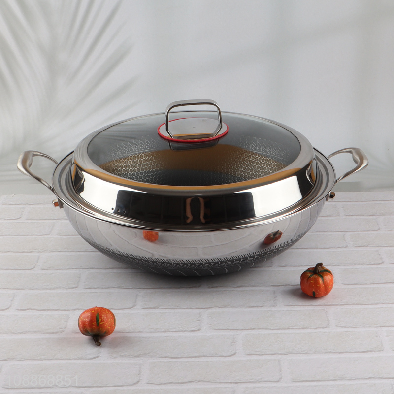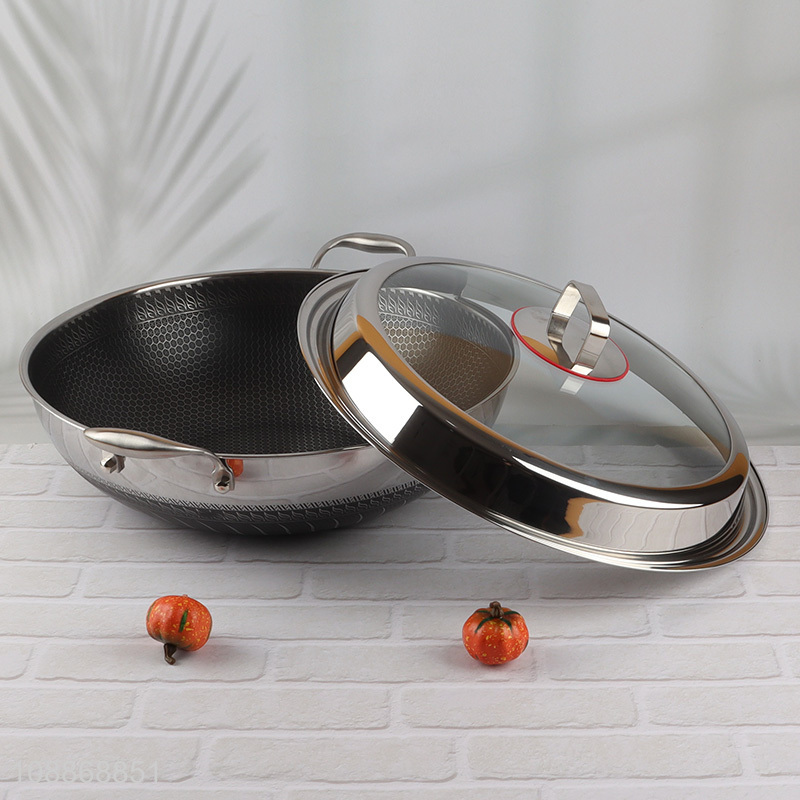 Best quality 2-handle stainless steel ceramic coating wok with glass lid
