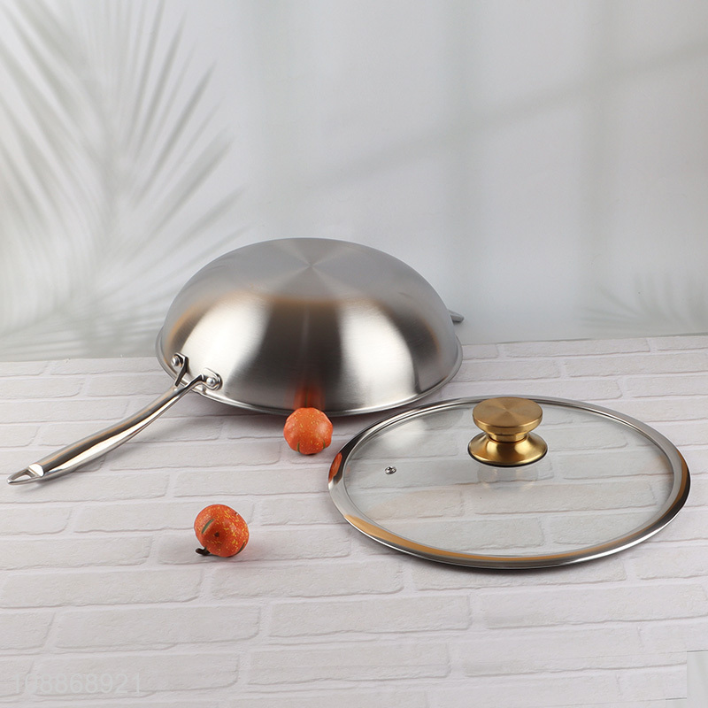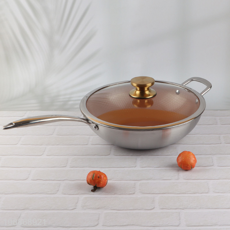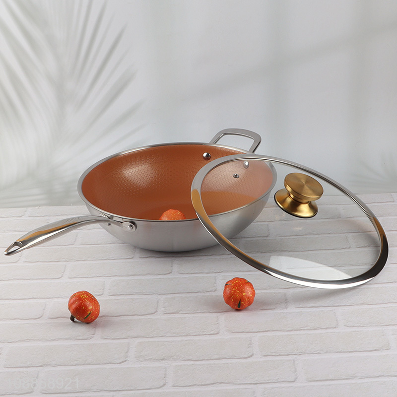 Wholesale stainless steel ceramic coating nonstick wok pan with glass lid