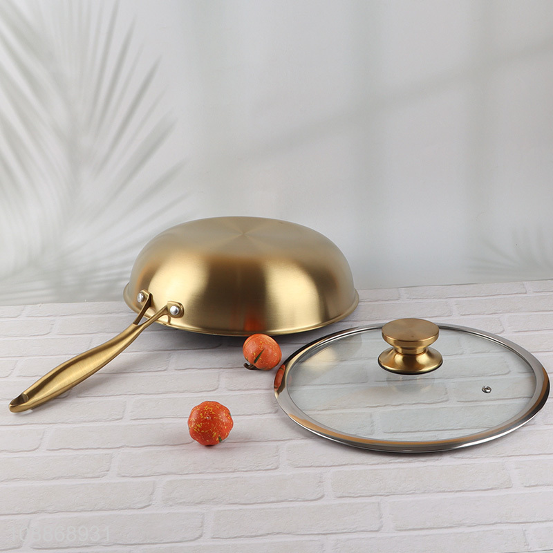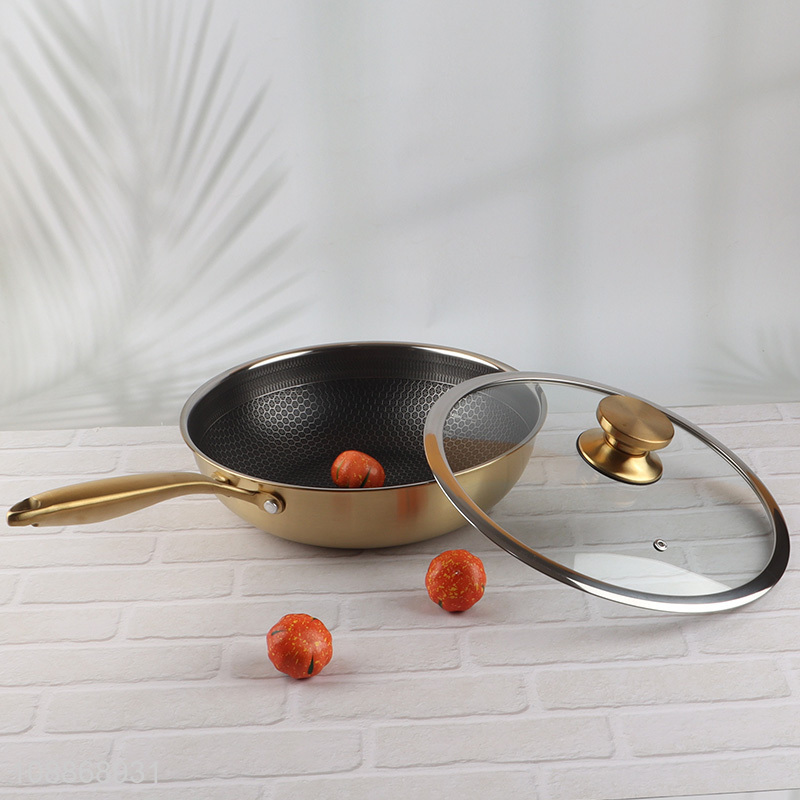 Wholesale stainless steel non-stick wok pan with lid for stovetop cooking