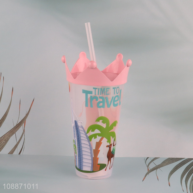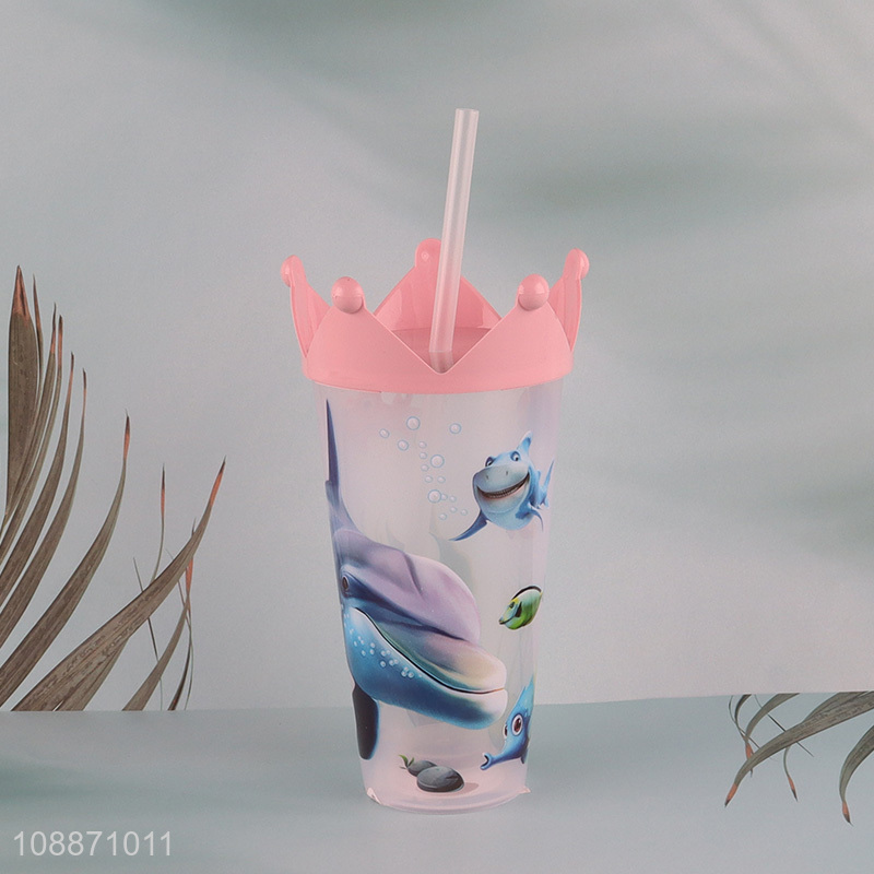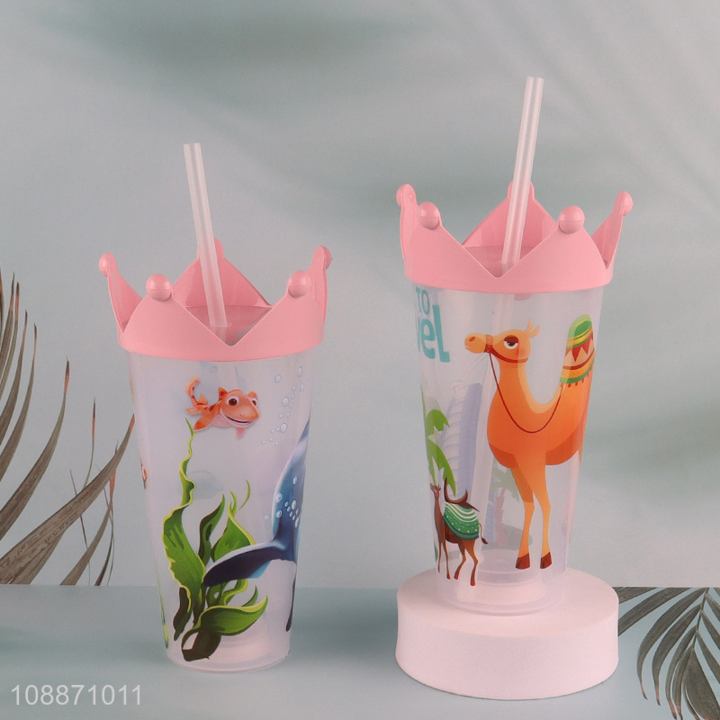 Good selling animal printed plastic water cup with straw&lights