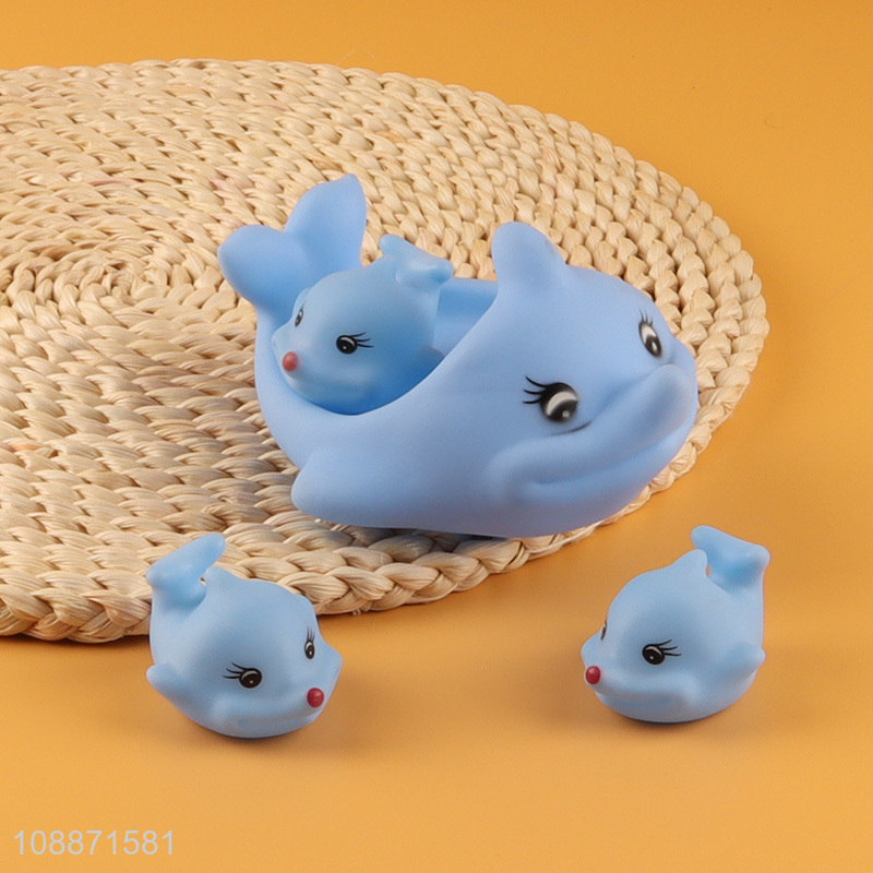 Hot selling dolphin family bath toys with 3 baby dolphins for bathtime