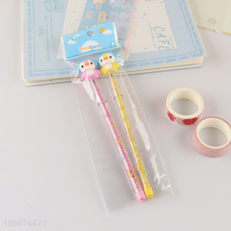 Best selling cartoon penguin plastic bullet push pencil set