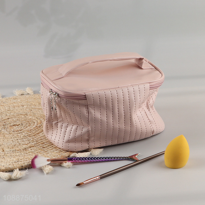 Wholesale portable waterproof pu leather cosmetic bag travel makeup pouch