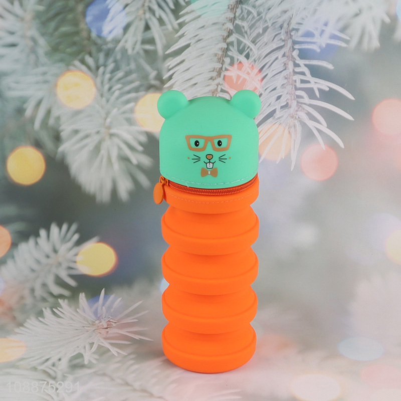 Wholesale retractable silicone pencil bag wateproof pencil pouch for kids