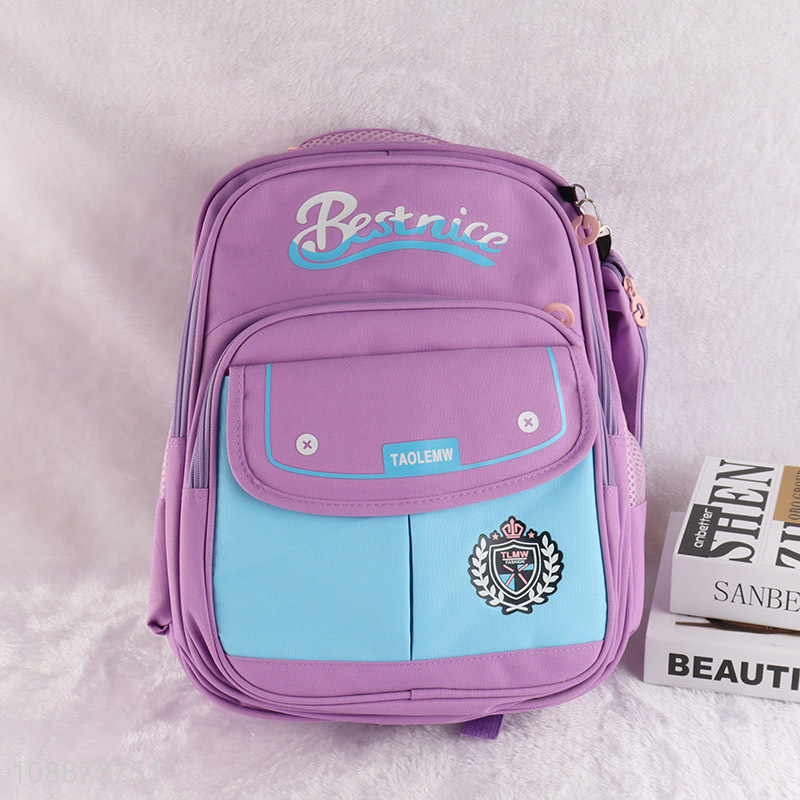 China factory purple polyester waterproof children school bag backpack