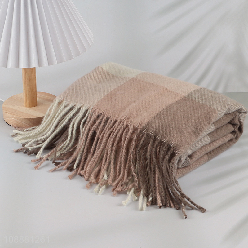 China wholesale women's winter scarf soft plaided scarf fringe scarf