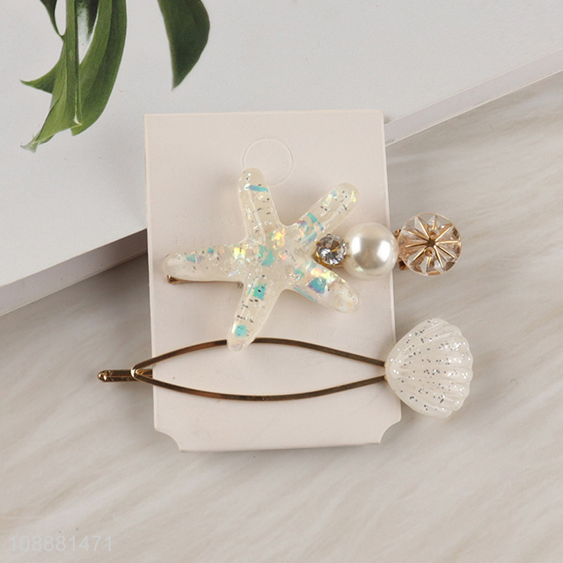 Hot selling 2pcs children girls pearl hairpin starfish hairpin set