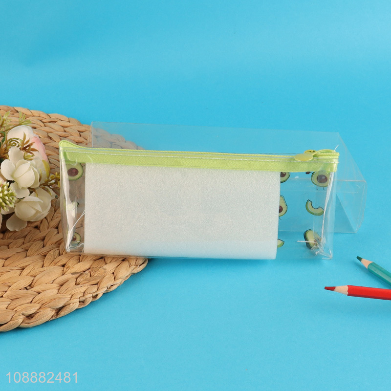 Yiwu market transparent avocado kids students pencil bag with zipper