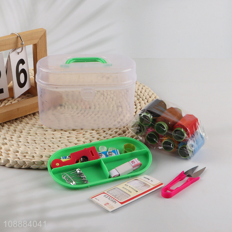 Good quality portable travel sewing kit with plastic box