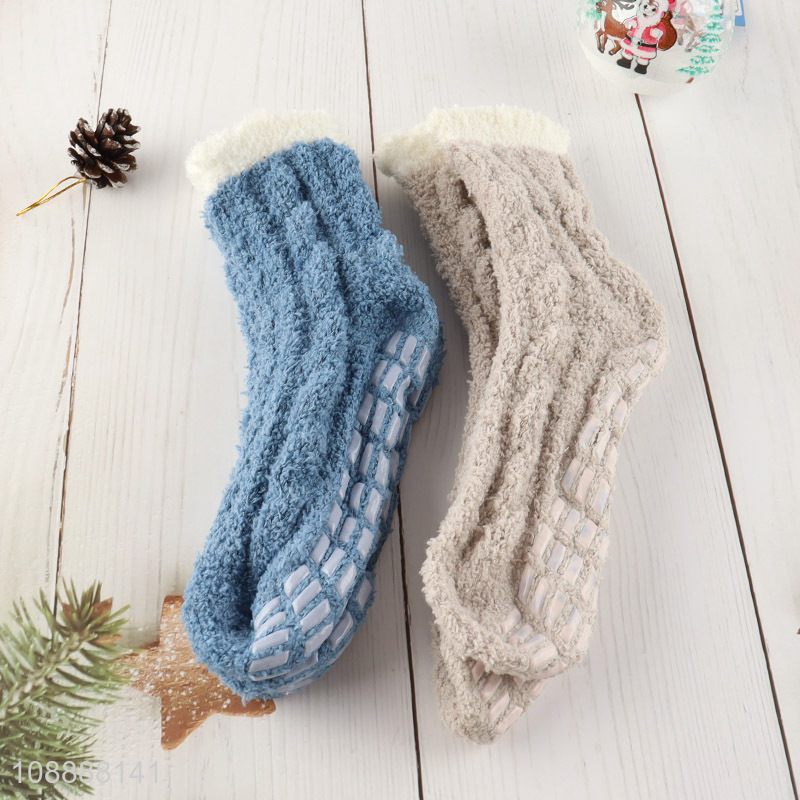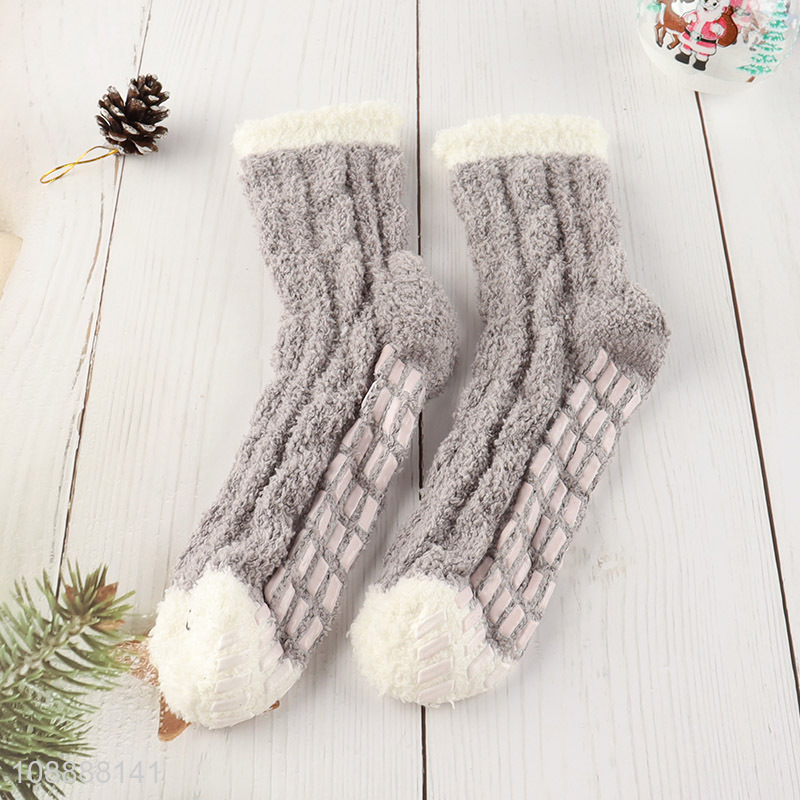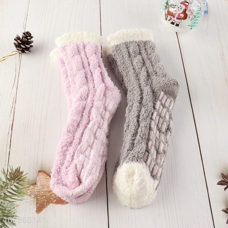 Wholesale non-slip microfiber slipper socks with grips for women