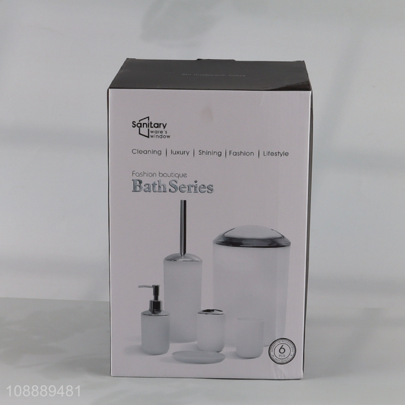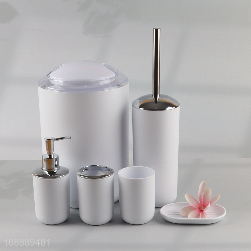 Hot products 6pcs white home bathroom set toilet brush liquid soap dispenser