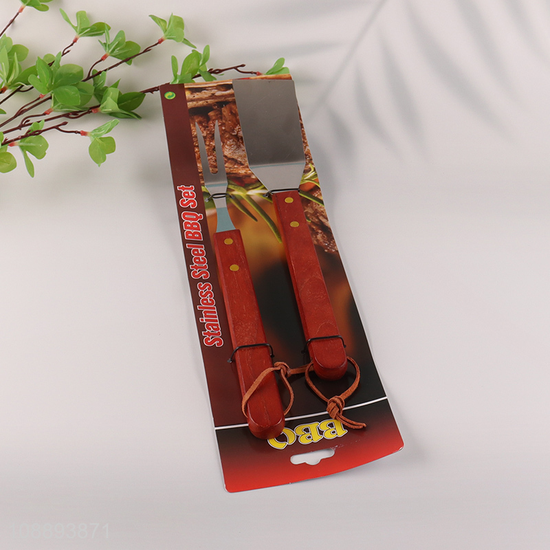 Wholesale 2PCS Stainless Steel BBQ Tools Set Metal Scraper and Fork Set