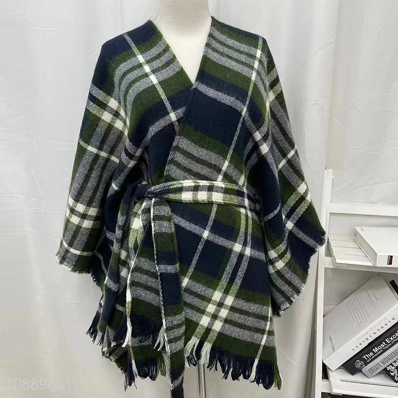 New product short lightweight soft check pattern bathrobe for women