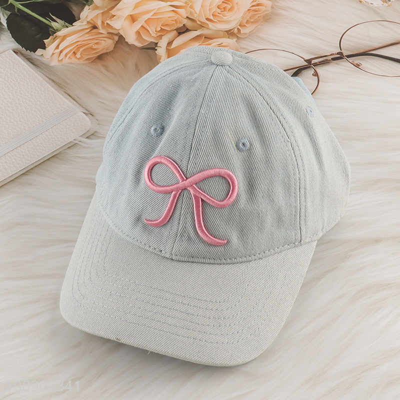 High quality cute bow embroidered baseball cap sunhat for women