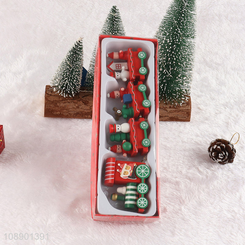 New Product Mini Wooden Christmas Train Set Painted Train Ornaments