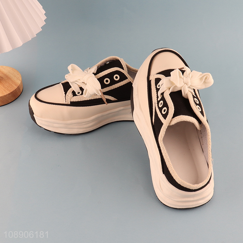 China imports summer platform lace-up canvas muler slipper for women