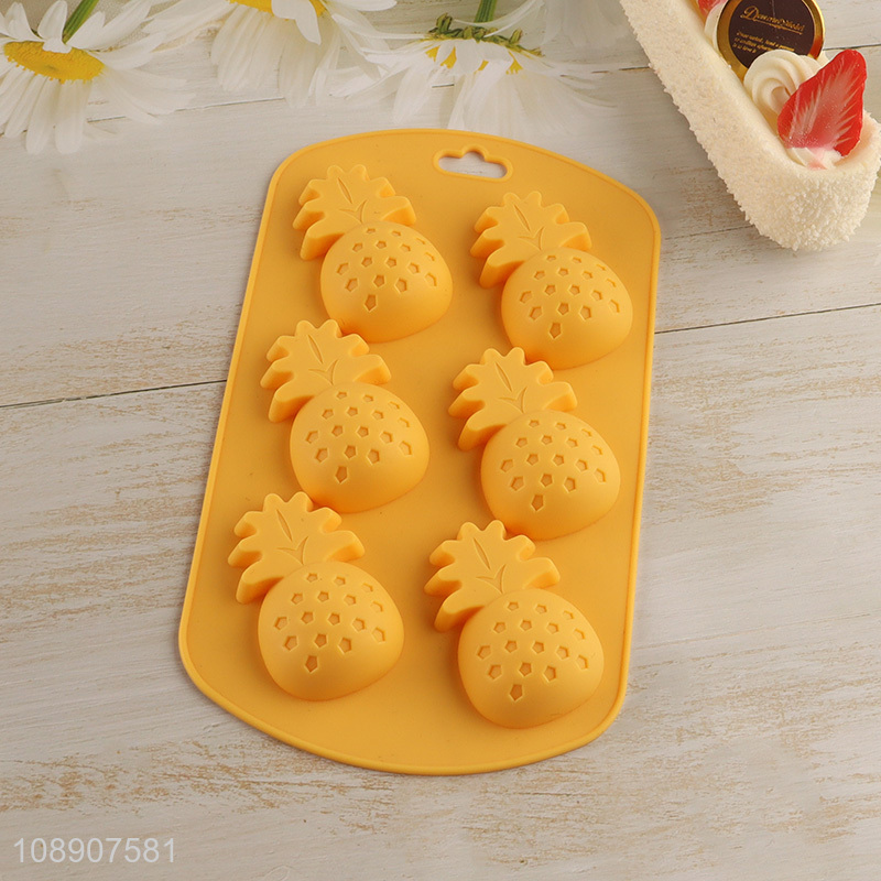 Hot selling 6-cavity pineapple shaped silicone ice cube tray for freezer