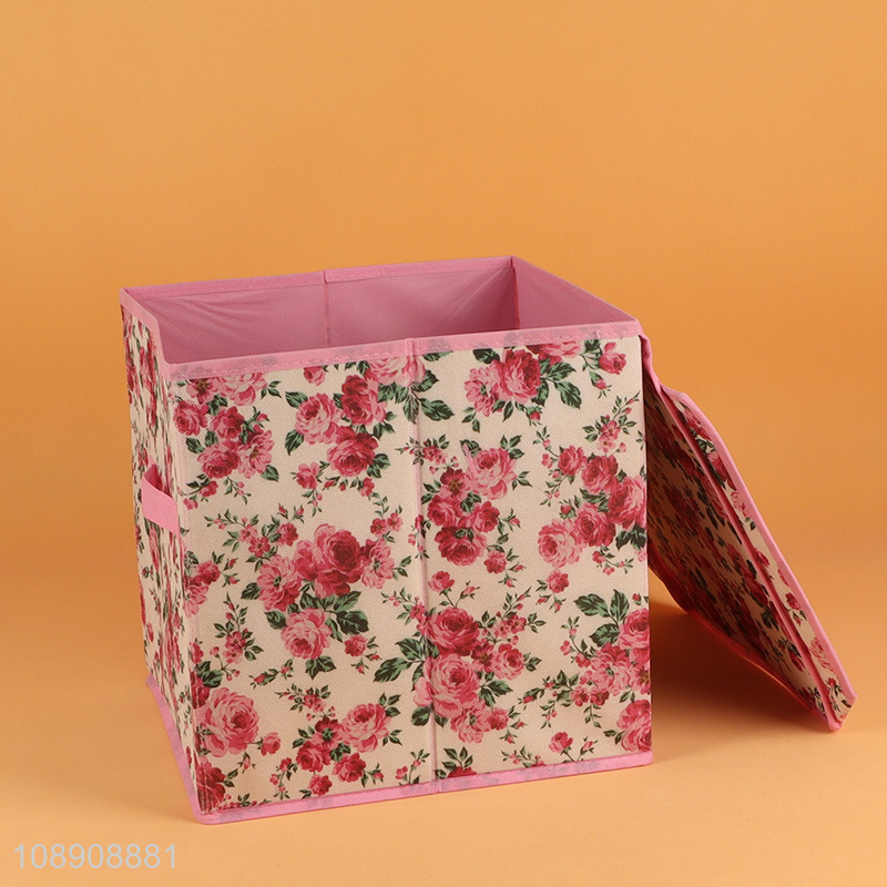 New product printed non-woven storage bin with lid&handle