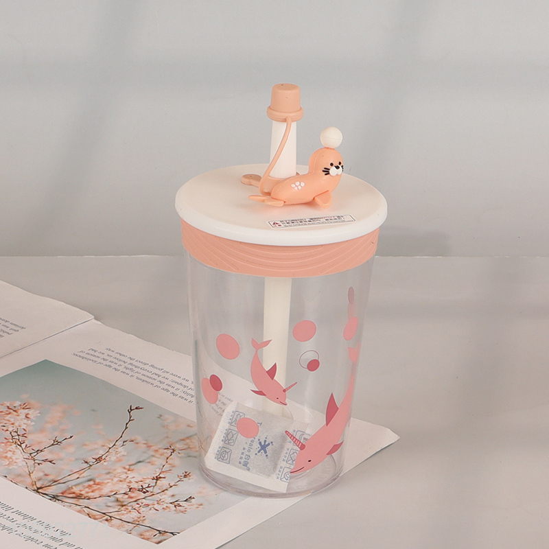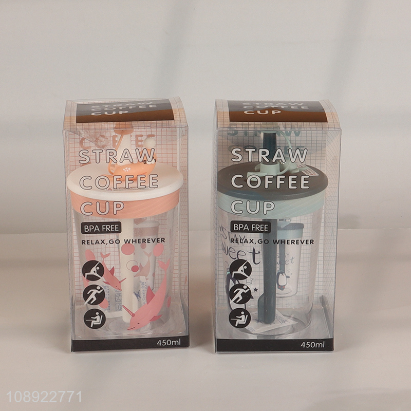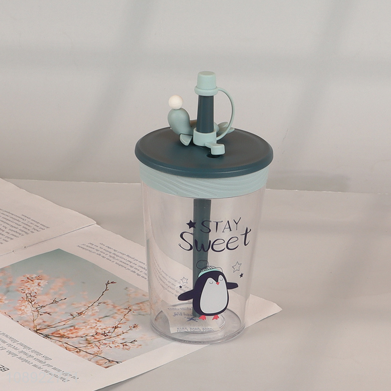 New Product 450ml Cute Cartoon Tritan Water Cup with Lid & Straw