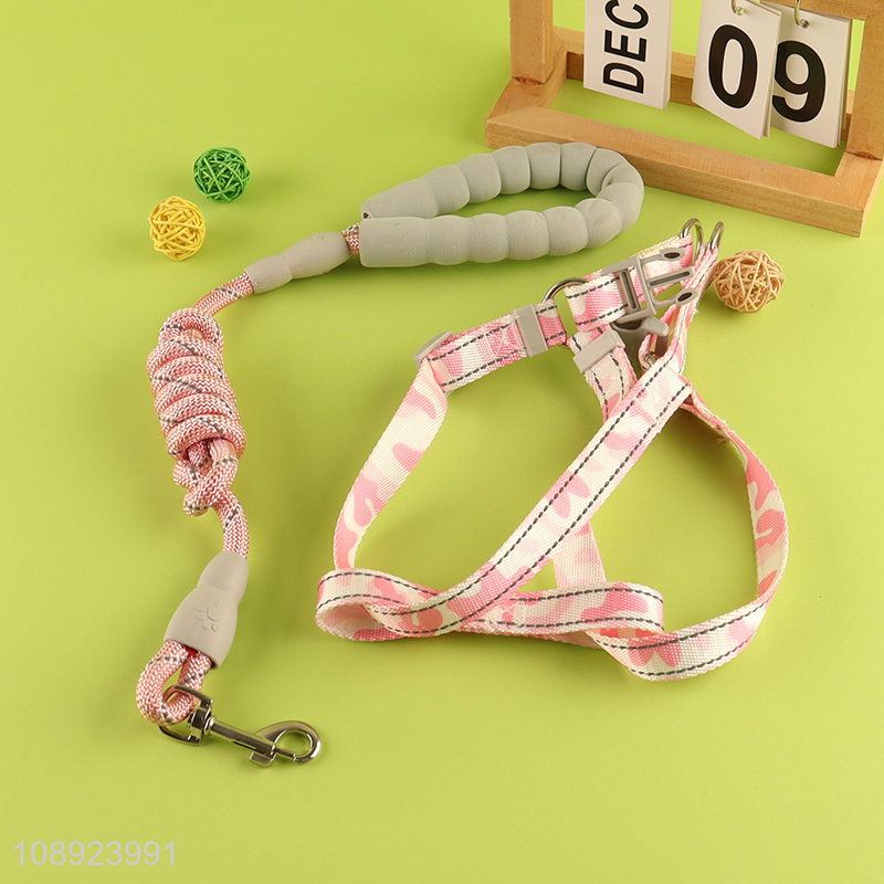 Yiwu market adjustable dog harness and leash set with foam handle