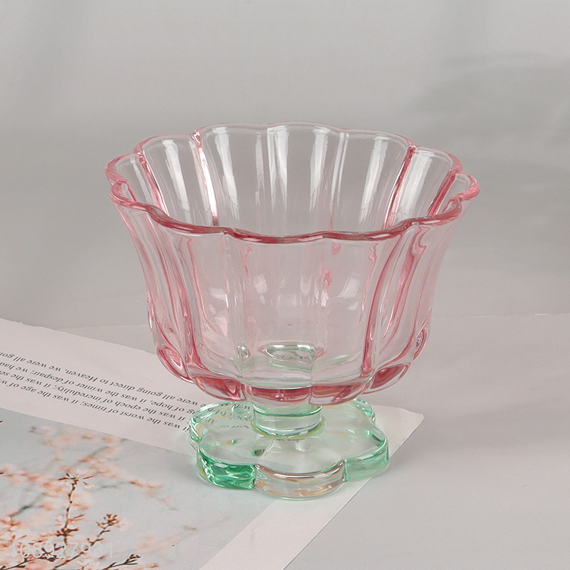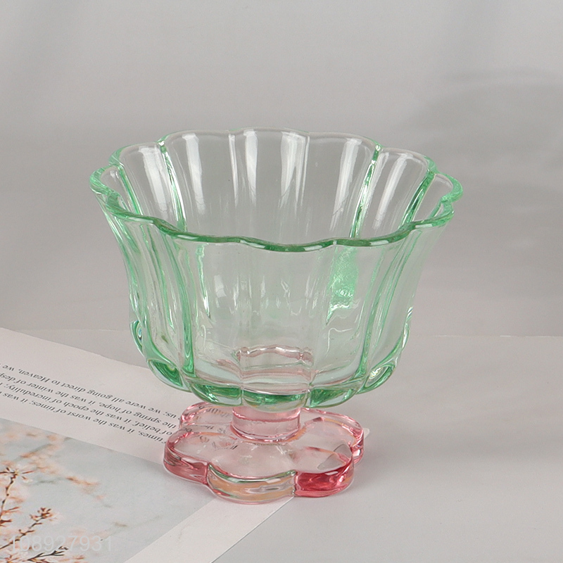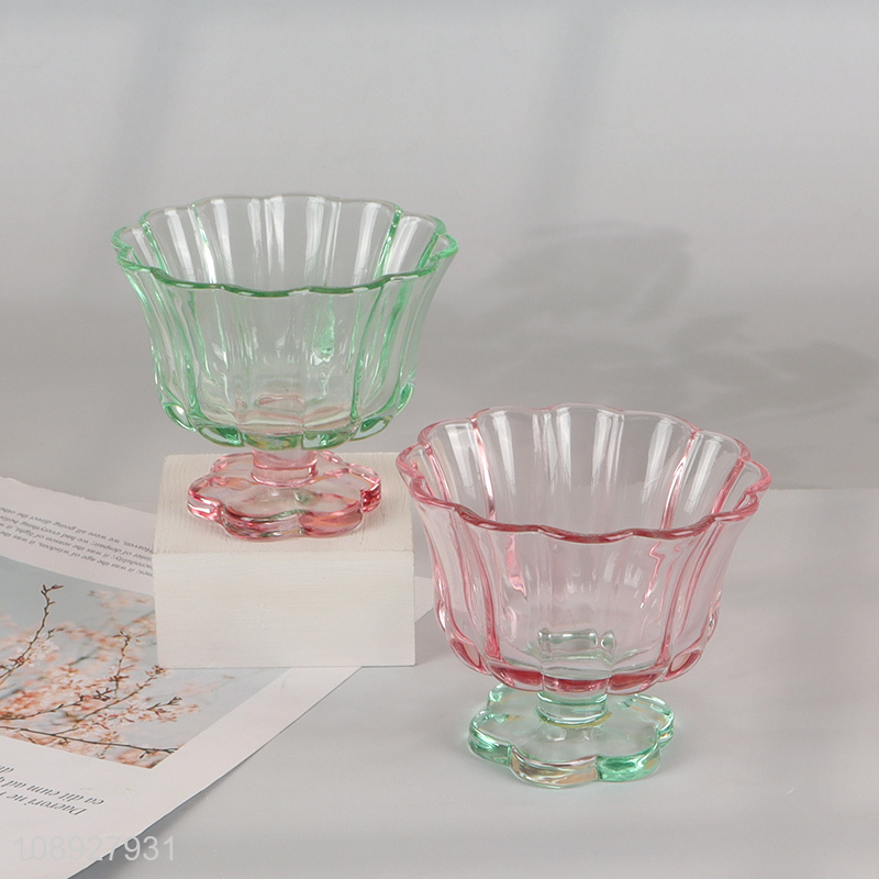 New Product Colored Flower Pedal Style Glass Cups Footed Dessert Cups