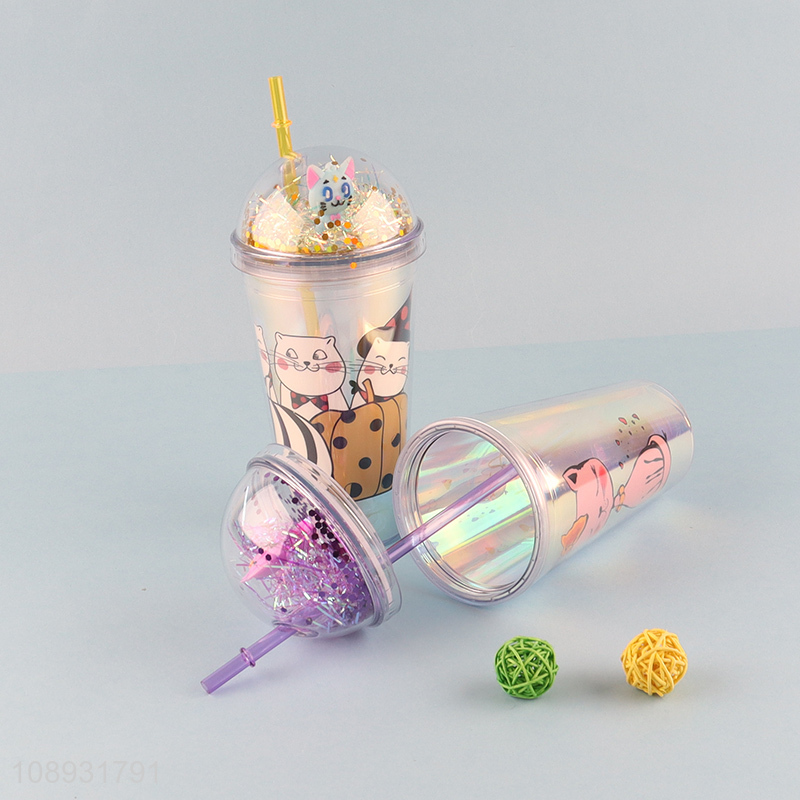 Factory price plastic straw water cup drinking cup with light