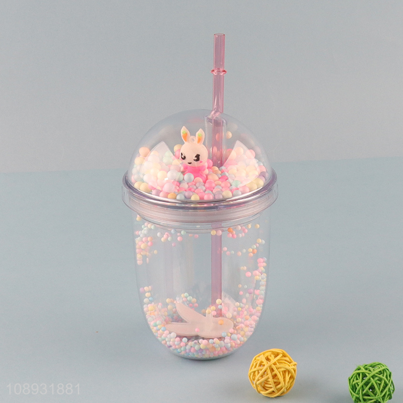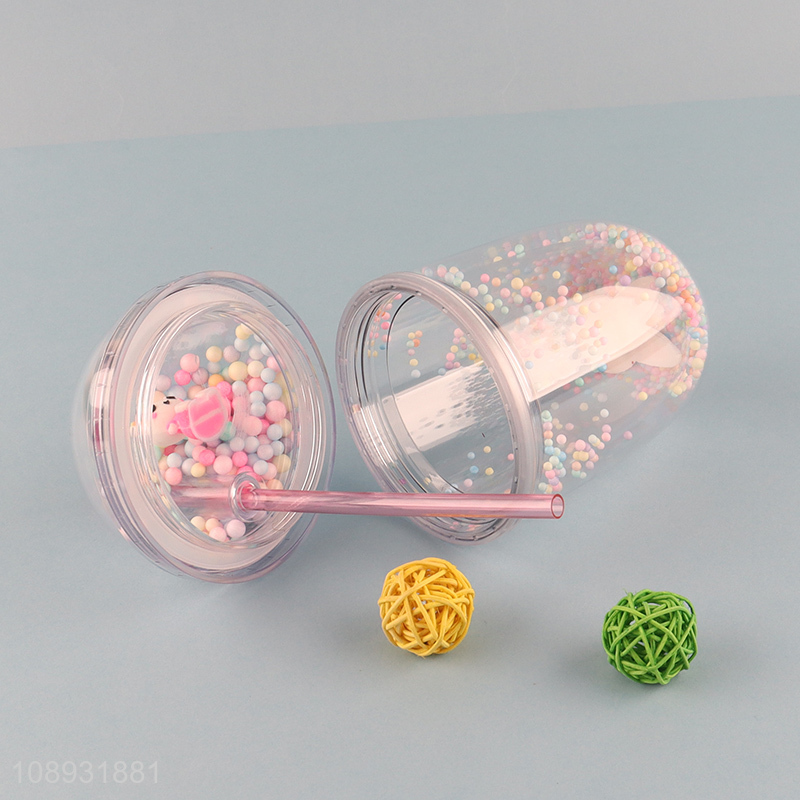 Hot products double wall cartoon plastic straw water cup with cute lid