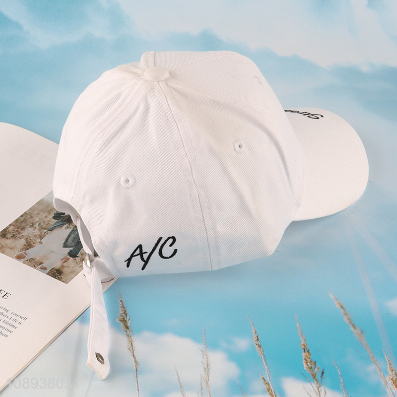 Factory supply white simple adjustable casual peaked cap