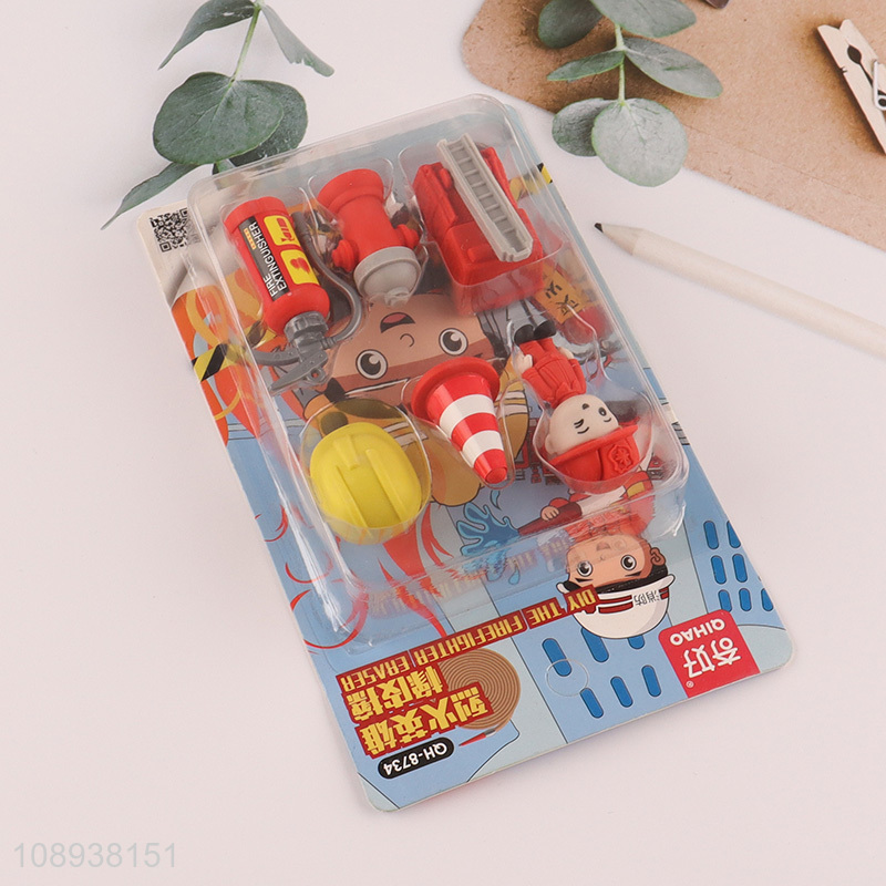Yiwu market cartoon firefighter eraser set for stationery