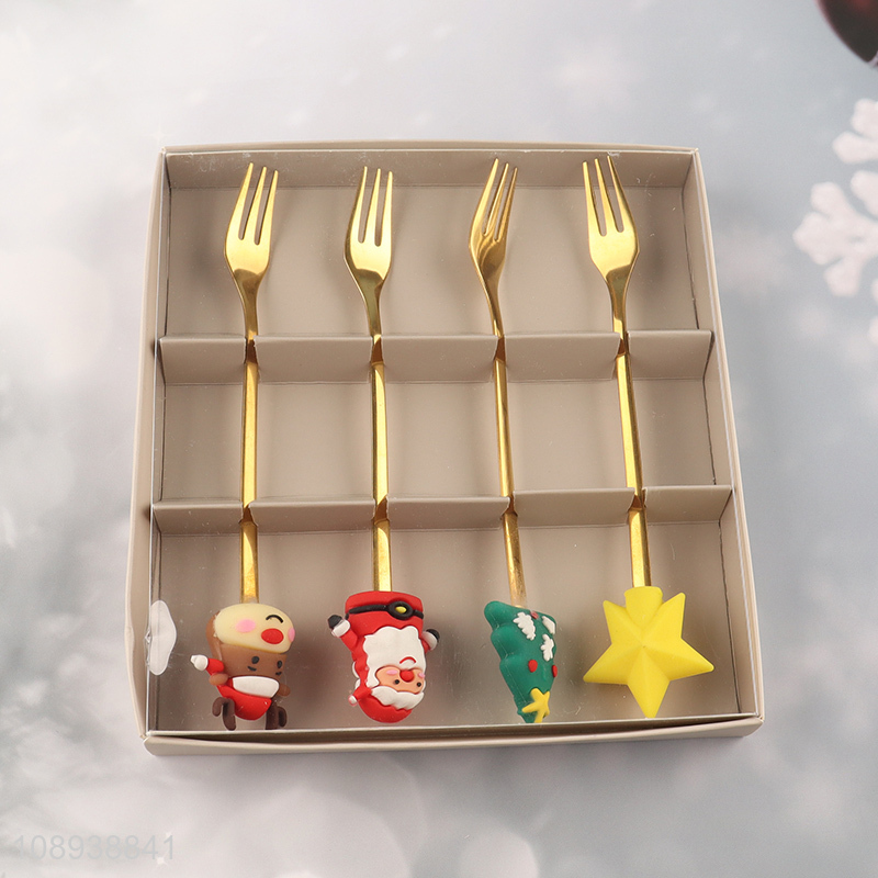 Low price 4pcs golden stainless steel christmas series cutlery fork