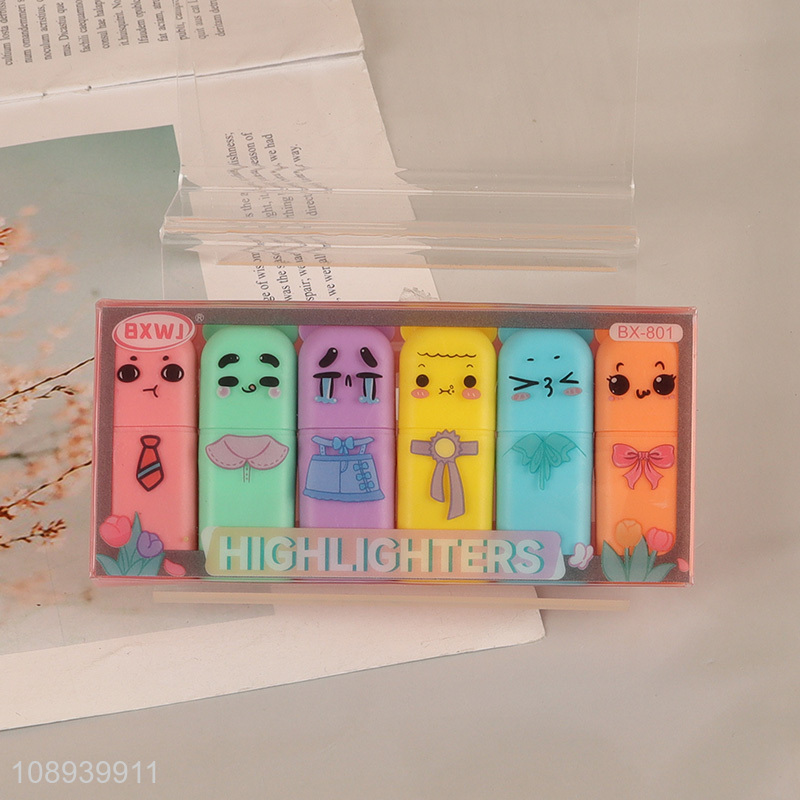 Factory Price 6 Colors Mini Kawaii Highlighters for School Classroom