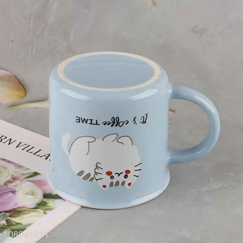 China factory cat pattern ceramic water cup with handle