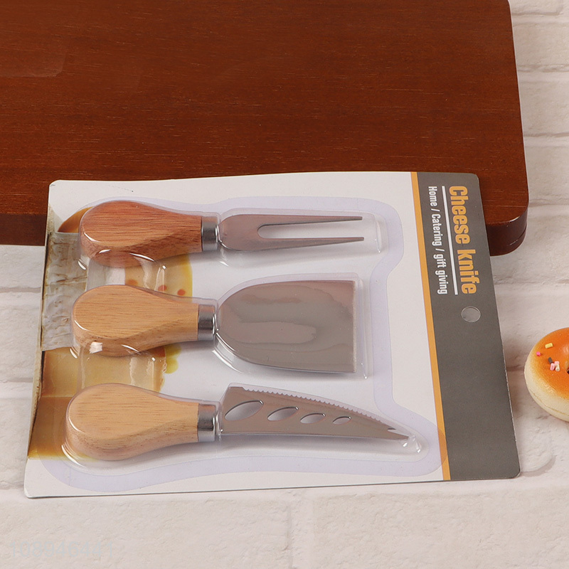 Hot Selling 3PCS Stainless Steel Cheese Knife Set with Rubber Wood Handle