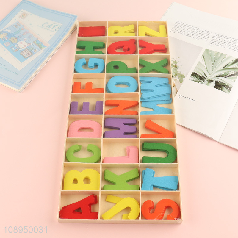 Wholesale Early Learning Toys Colorful Wooden Alphabet with Storage Tray