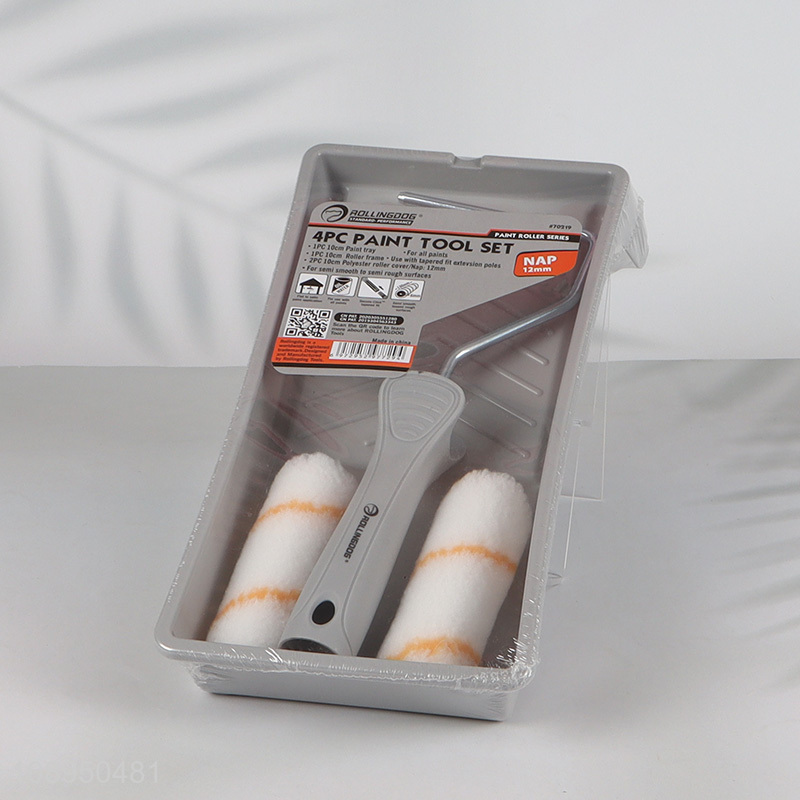 Best quality 4pcs professional paint tool set paint tray paint roller set
