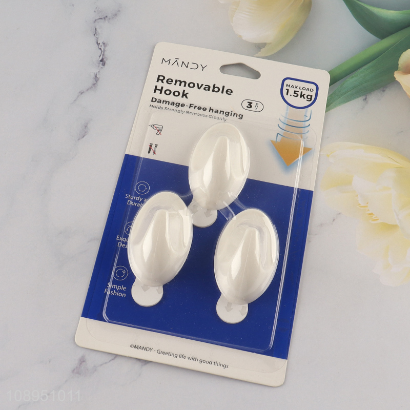 Wholesale 3PCS Oval Sticky Hooks Adhesive Wall Hooks for Hanging