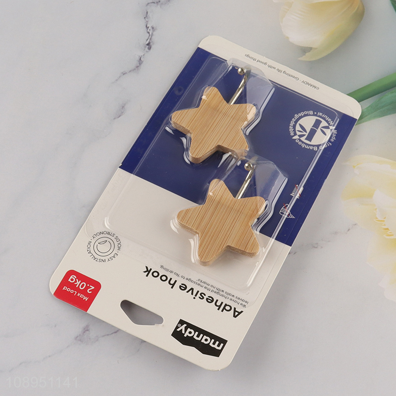 Factory Wholesale 2PCS Star Shape Bamboo Hook Wood Sticky Hooks