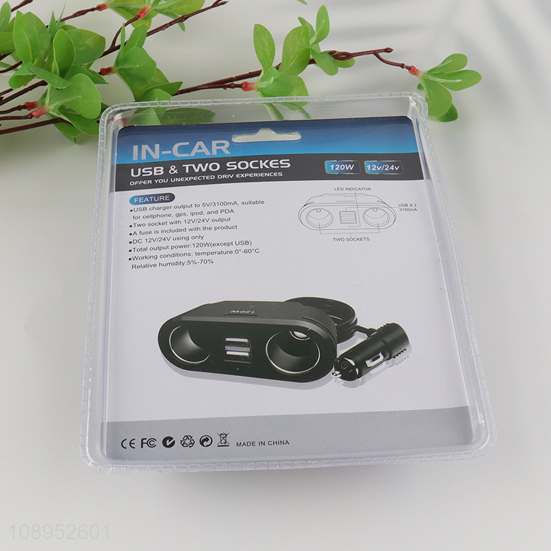 Factory Price 120W Car Charger Cigarette Lighter with 2 Sockets & 2 USB Ports