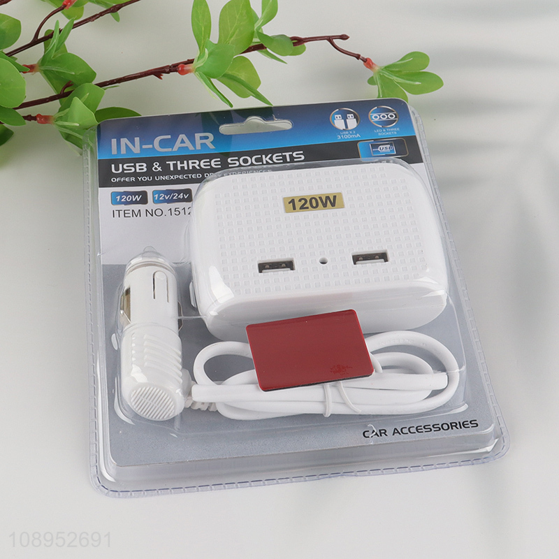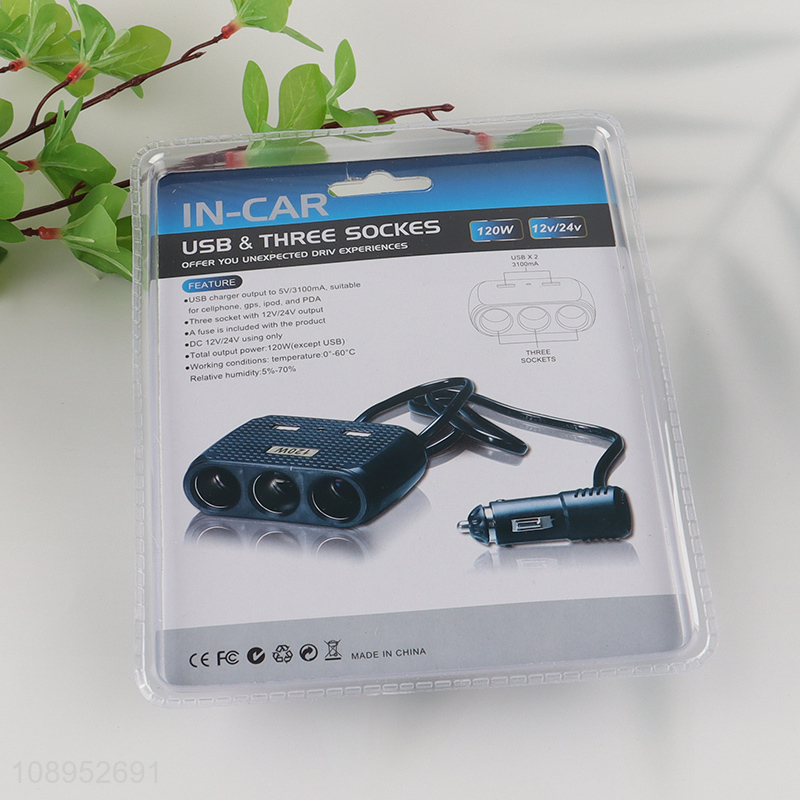 Factory Price 120W Car Charger Cigarette Lighter with 3 Sockets 2 USB Ports