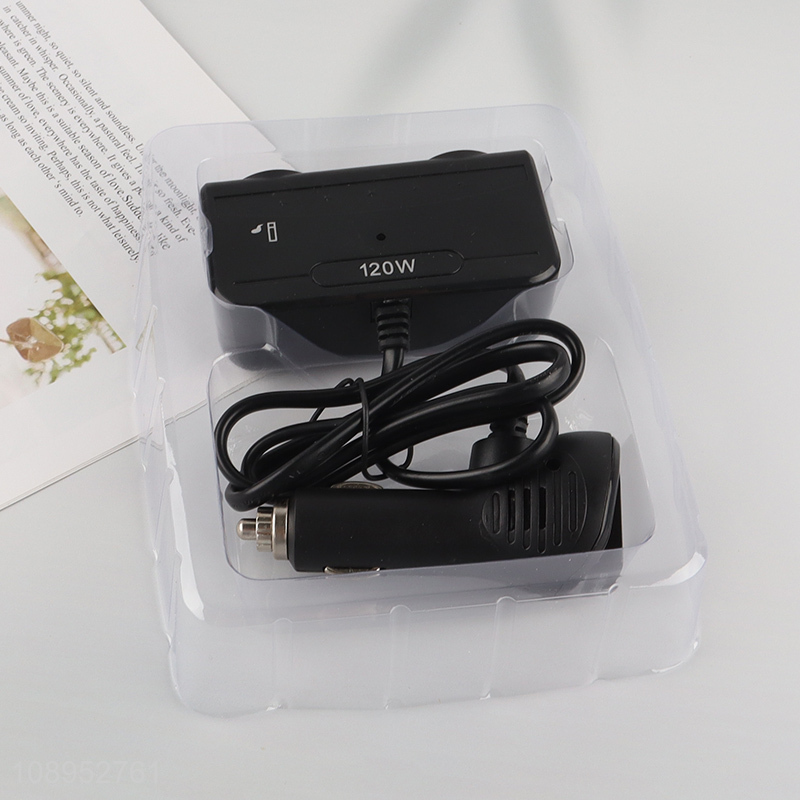 New Product 120W 2-Socket Car Cigarette Lighter USB Charger for Car Device