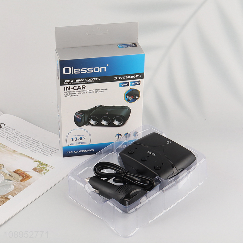 China Imports 120W Car Charger Cigarette Lighter USB Charger with 3 Sockets