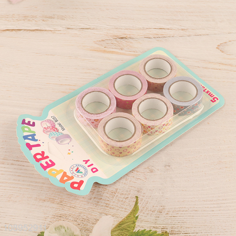 Hot Selling 6 Rolls Heart Pattern Washi Paper Tapes for DIY Scrapbooking