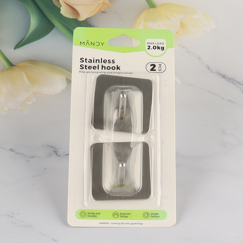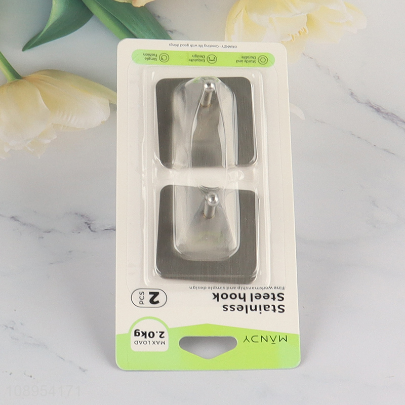 New Arrival 2PCS Square Adhesive Towel Hooks for Bathroom Kitchen