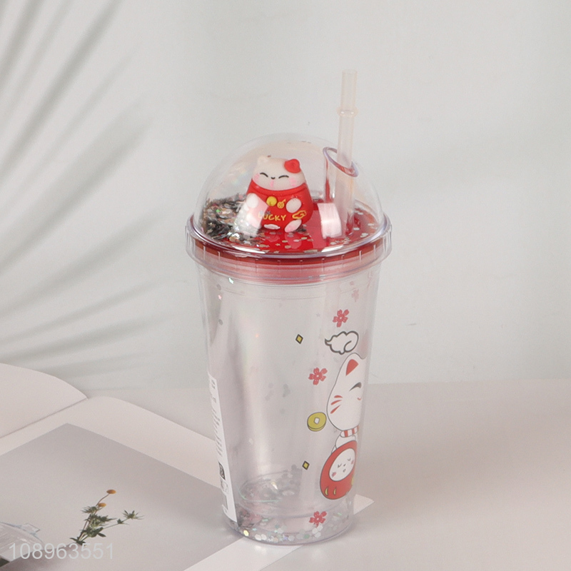 Top products double wall lucky cat drinking cup with lid and straw